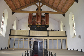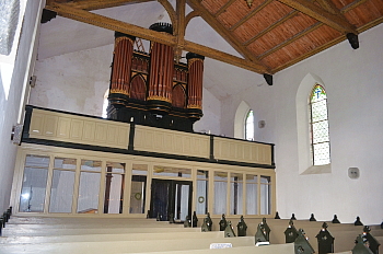 Die Ausstattung der Kirche ist zum Teil aus der Erbauerzeit. So ist hier eine Orgel von 1862 von Friedrich A. Mehmel aus Stralsund mit neugotischem Prospekt, 5 klingende Stimmen zu finden. Sie wurde 1996 von Fa. Sauer , Frankfurt/Oder, restauriert. Weiterhin die Fensterverglasung um 1862 sowie Kerzenhalter aus Messing und 2 Kruzifixe aus der 2. Hälfte des 19. Jahrhunderts |